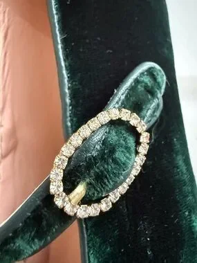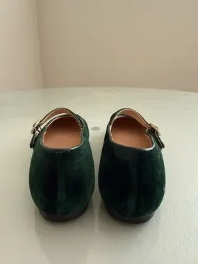 Elegant and trendy J.Crew velvet Mary Jane flats in a rich deep green color.