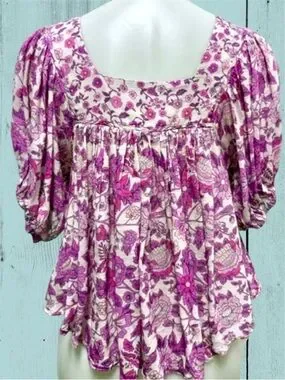 Spell Mossy Short Sleeve Blouse, Med, EUC!