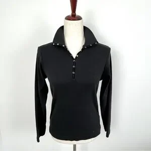 Cutter & Buck Thermal Long Sleeve Satin Trim Snap Henley. Black. Small #434