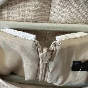 The hook and eye clasp "eye" part over the back zipper is missing or too recessed