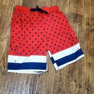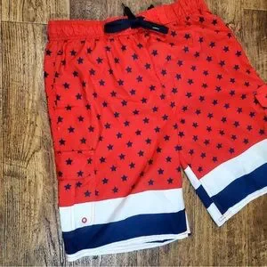 Stylish red men's shorts featuring a striking star pattern. Perfect for casual outings and beach days.