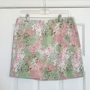 J.CREW Watercolor Floral Mini Skirt Pink Green Cotton Stretch Size 4