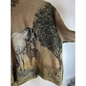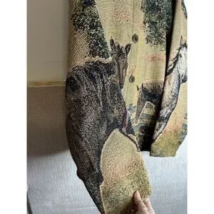 Sugar Street Weavers Vintage Cardigan Sweater XL Horse Tapestry EUC