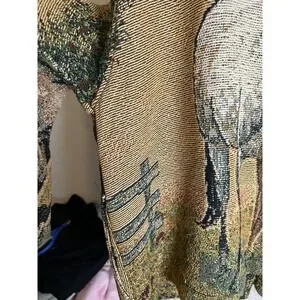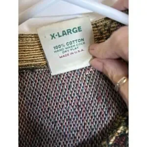 The Sugar Street Weavers Vintage Cardigan Sweater in XL size features a unique horse tapestry design, making it a standout piece for any casual occasion. Made with 100% cotton knit fabric, this short length sweater has long sleeves and a button closure. The multicolor landscape pattern adds a whimsical touch, while the pockets provide added functionality. Perfect for the winter, fall, and spring seasons, this vintage cardigan showcases beautiful craftsmanship and style from the United States brand Sugar Street Weavers. Hand wash only to preserve its charm and quality.