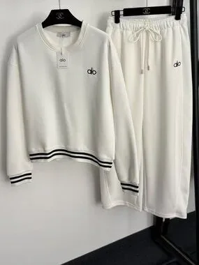 Alo Yoga Pure White Striped Casual Set, Size M. Worn only once, no defects.