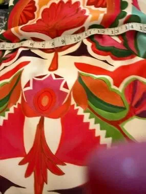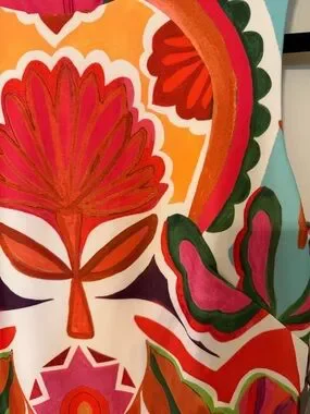 Bold floral and geometric print in vibrant hues. Sleeveless mini silhouette with a fitted shape. Bright, playful palette for daytime or events.
