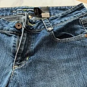 Jeans have button loop on bottom to shorten