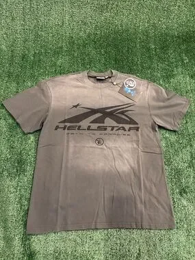 Hellstar short-sleeve tee in charcoal gray with a bold tonal logo across the chest. Made from soft, breathable fabric for all-day comfort. Classic crew neck and relaxed fit for easy everyday wear. Versatile charcoal gray pairs well with jeans or casual bottoms.