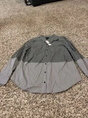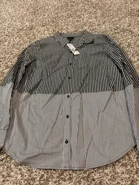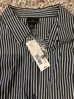 NWT -Worthington Black and White Striped Button-Down Shirt large