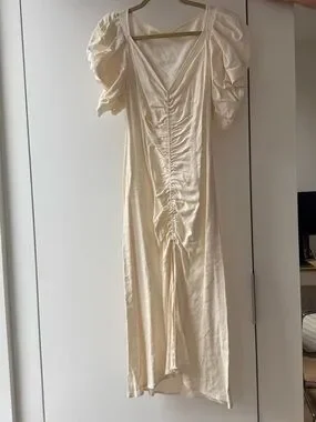 Cult Gaia Ruched Puff Sleeve Midi Dress