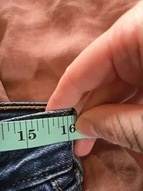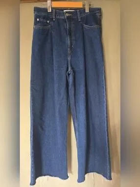 Classic high-waist wide leg jeans in a rich blue wash. Designed for a relaxed, on-trend fit with soft drape and raw hem detail. Comfortable stretch for everyday wear. Pair with tees or jackets for versatile styling. Blue color adds timeless appeal. Vintage!! Pre-Loved and in Excellent Condition!! Size : 29 Measurements : . Waist : 16" . Rise : 14" . Inseam : 28 1/2"