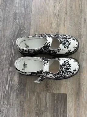 Dr. Martens Black & White Floral Mary Jane Strap Shoes
