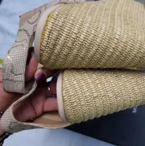 I bought these and the other pair. Neither has been worn. Both are Euro sizing..say 11 but fit a 10..See my foot in photo #2. They come in the box. Shoes may be bundled up to,; not over 5lbs. Style is called Sandy.