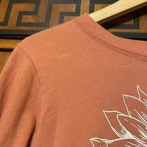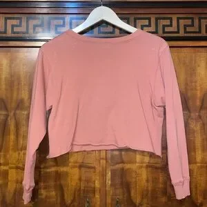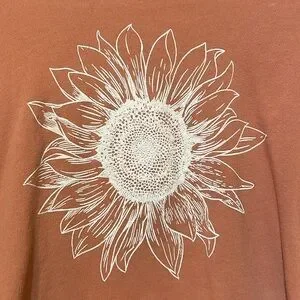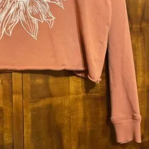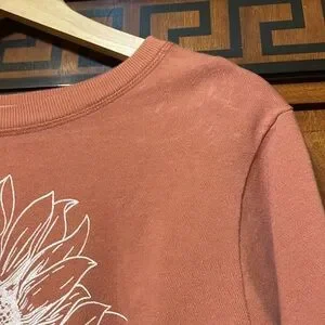 Originality juniors size M long sleeve crop top in dusty rose/mauve pink. Features a detailed white sunflower graphic print on the front. 100% cotton, Made in the USA. Great casual everyday top.