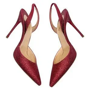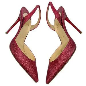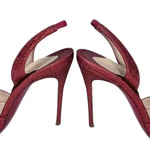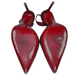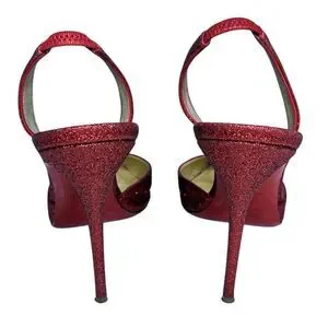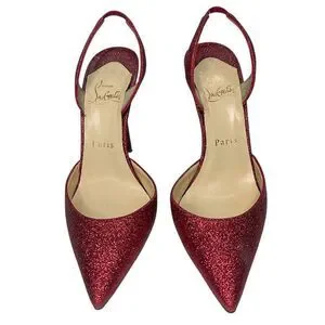 Christian Louboutin Ever 100 Red Glitter Slingback Heels EU 37.5 Sparkly Pumps