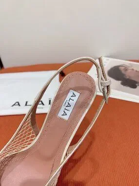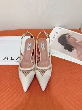 Alaïa White Mesh Cutout Pointed Toe Kitten Heel Sandals