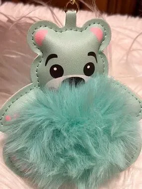 Cute mint bear keychain with a soft mint pom for kids. Lightweight and easy to attach to backpacks and lunch bags. Fun mint color adds playful charm and personality.