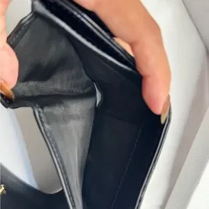 Features a structured trifold design with multiple card slots and compartments, perfect for everyday luxury.
