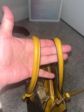 3 Questions, if you please. Could you kindly tell me the depth in inches. And also the height of the handles in inches. Is the background dark brown? Thank you so much for your time.