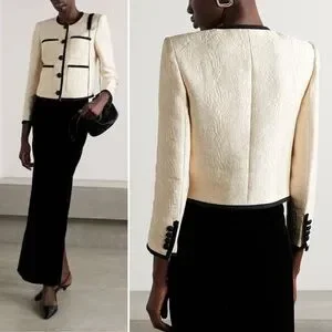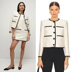 VERONICA BEARD Darla Jacquard Contrast Trim Jacket Size 10 Ivory Black