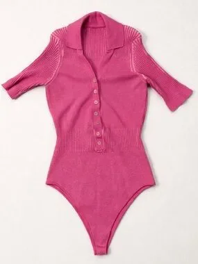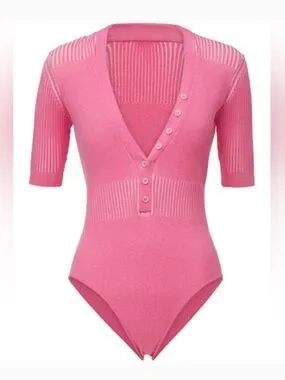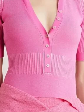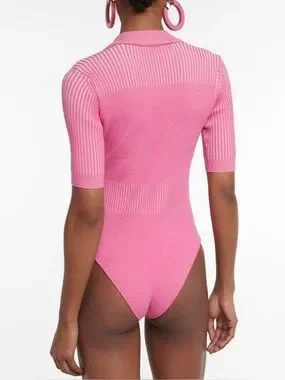 Jacquemus Le Body Yauco Polo Bodysuit Size S Pink Knit Buttons Stretch Barbie
