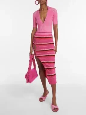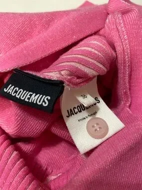 jacquemus pink bodysuit designer luxury ribbed knit fitted sexy chic minimal parisian french style statement top summer spring resort vacation date night going out clubwear trendy influencer high fashion capsule wardrobe elevated basics