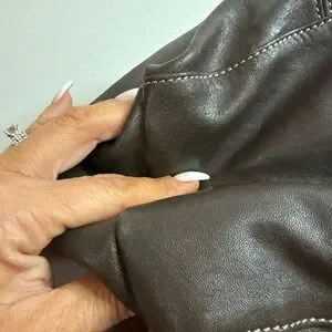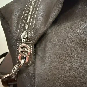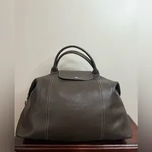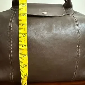 Longchamp Modele Depose Dark Brown Leather tote/shoulder Bag silver hardware