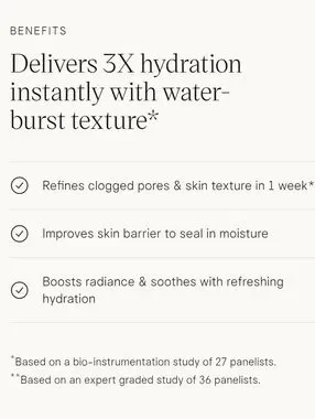 Oil-free hydrating gel cream. Balances skin moisture and refines texture. Boost radiance.
