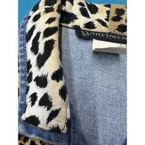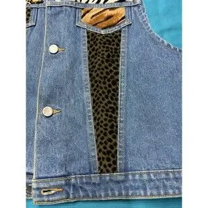 Vintage WHITTALL & SHON Denim Vest Animal Print Patchwork Leopard Zebra Size M
