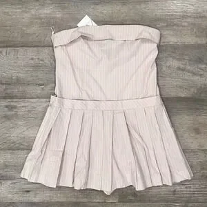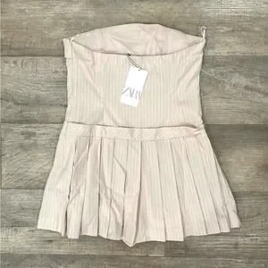 BLOGGER FAVE!!! Pale pink strapless mini dress with straight neckline. Pleated hem with inner shorts-style lining. Side hidden in-seam zip closure. From ZARA, in size M and L. New with tags.