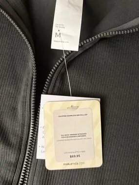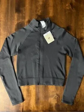 Brand new with tags Fabletics cropped seamless full zip jacket in a sleek dark gray ribbed fabric.