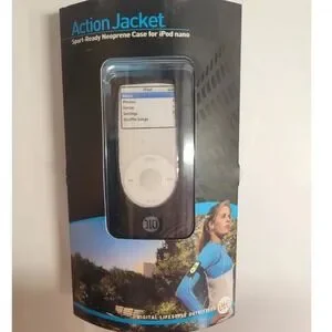 DLO Action Jacket Sport-Ready Neoprene Case for iPod nano provides a secure and protective solution for active users. This black neoprene sleeve features a clear window for full click wheel access while shielding the device from sweat and the elements during workouts. It includes a 180-degree rotating belt clip and an adjustable armband that fits bicep circumferences from 6" to 20".