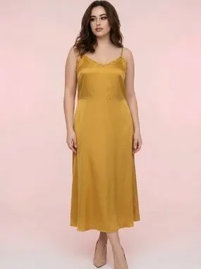 Aritzia Wilfred Satin Slip Midi Dress | Gold Mustard | Size 10