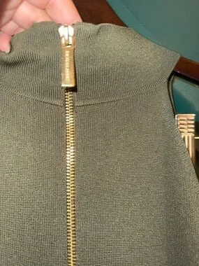 Michael Kors Olive Green Knit Dress with Gold Hardware