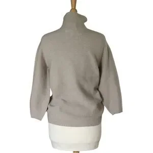 Excellent condition, worn once. MaxMara Etrusco Wool Cashmere Turtleneck Maglia 3/4 sleeve Pullover Sweater. Size small. Please check measurements. When flat, armpits measure approx 18” across, length approx 23.5”. This sweater is composed of 70% wool, 30% cashmere. Light taupe color.