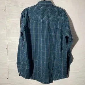 Ely Cattleman Teal Plaid Long Sleeve Pearl Snap Western Shirt L