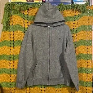 Keywords: Polo Ralph Lauren hoodie, heather gray zip hoodie, XL full zip sweatshirt, Polo pony fleece hoodie, grey mens hoodie, Polo Ralph Lauren sweatshirt, fleece lined zipup, preppy hoodie XL, used Polo hoodie, casual fleece jacket, Ralph Lauren grey pullover, vintage Polo sportswear, gym hoodie men, streetwear zip hoodie