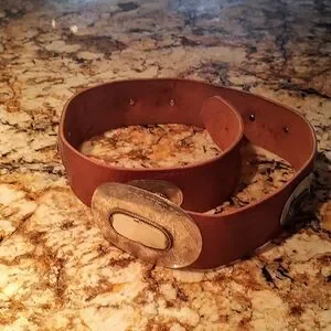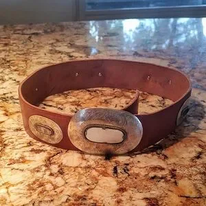 Chico's Brown Leather Belt with Silver-Tone Conchos