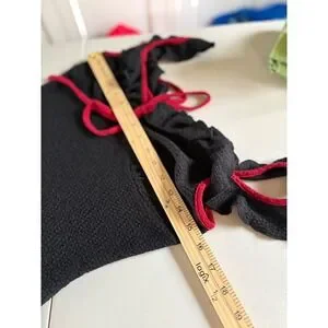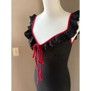 Cider Black Red Ruffle Bow Textured Sweetheart Neck Midi Dress Size M
