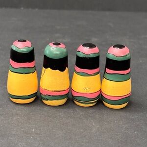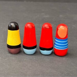 People Of The World “earth Filled With Friendship” Wooden Toys Vintage Set Of 16. These will ship in the pictured wooden box. Perfect for playtime, counting, doll house, etc. I’m sure these are from different sets but I was able to get these at an estate sale so I’m selling them together. These are in good pre-owned condition. Some may have wear on paint but overall very good for being vintage. The largest ones measure approximately 2x1, medium size 1.75x.75, small size 1.5x.5 and the smallest 1.25x.75. Perfect for the collector of wooden “nesting” type dolls (these do not open like nesting dolls though).