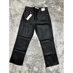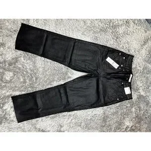 Topshop Coated High Waist Crop Straight Jeans In Black Size W 30 L30