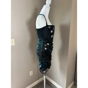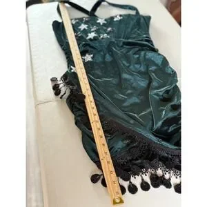 Keywords: Celestial, Whimsigoth, Retro, Glam, Holiday, Festive, Dark Emerald, Burlesque, Vegas, Disco, Night Out, Velvet Dress, Starry Night, Fringe Dress