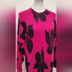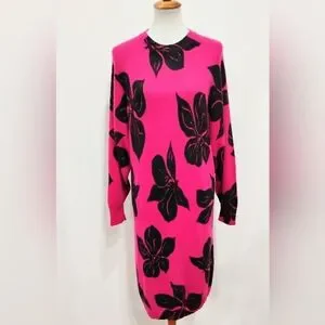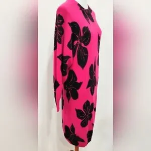 VINTAGE DANIEL CARON FLORAL LAMBS WOOL SWEATER DRESS