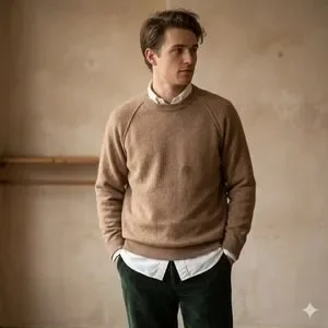 Keywords: Old Money, Quiet Luxury, Preppy, Academic, Heritage, Scottish Knitwear, Angora Blend, Minimalist, Classic, Neutral, Winter, Fall, Sophisticated