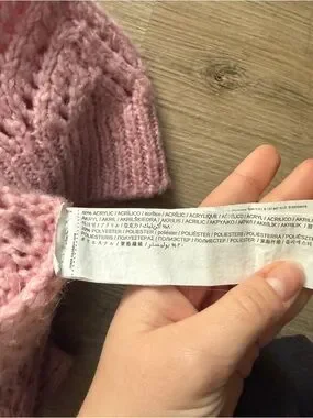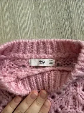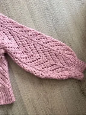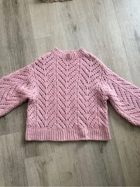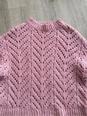 Mango Pink Open-Knit Chevron Crewneck Sweater