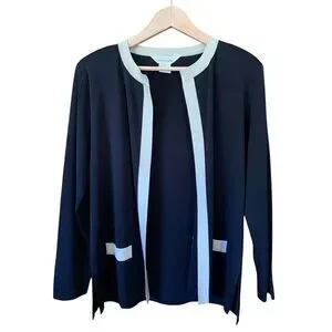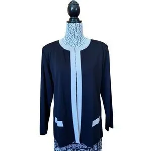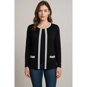 Misook Open Knit Gold Trim Cardigan Black Size M