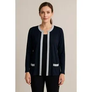Misook Open Knit Gold Trim Cardigan