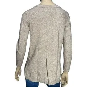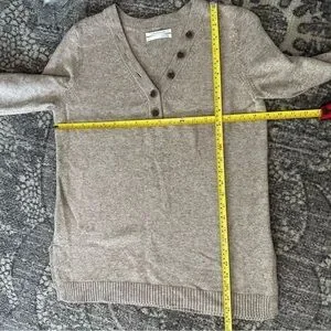 Anthropologie Women’s Size S Tan Button Henley V-Neck Viscose Blend Knit Sweater