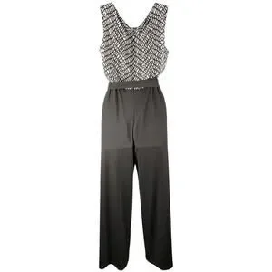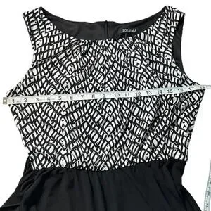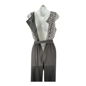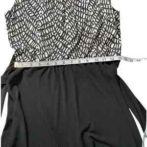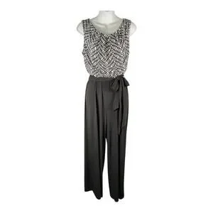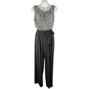ROZ& Ali Black White Sleeveless Jumpsuit W/ Tie Waist Elegant Wide Leg Size 10P