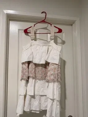 POL White Tiered Mini Dress with Pastel Floral Panels